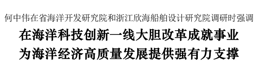 10月10日下午,市委书记、新区党工委书记何中伟赴省海洋开发研究院、浙江欣海船舶设计研究院调研。他强调,要深入学习贯彻习近平总书记关于科技创新的重要论述和党的二十届三中全会精神,聚焦“985”行动实施和舟山高质量发展所需,全力做好关键核心技术攻关、成果转化应用、激发人才活力、体制机制创新等各项工作,在海洋科技创新一线大胆改革、释放潜能,做大做强、成就事业,以科技创新赋能现代海洋产业发展,为舟山实现海洋经济倍增提供强有力的支撑。